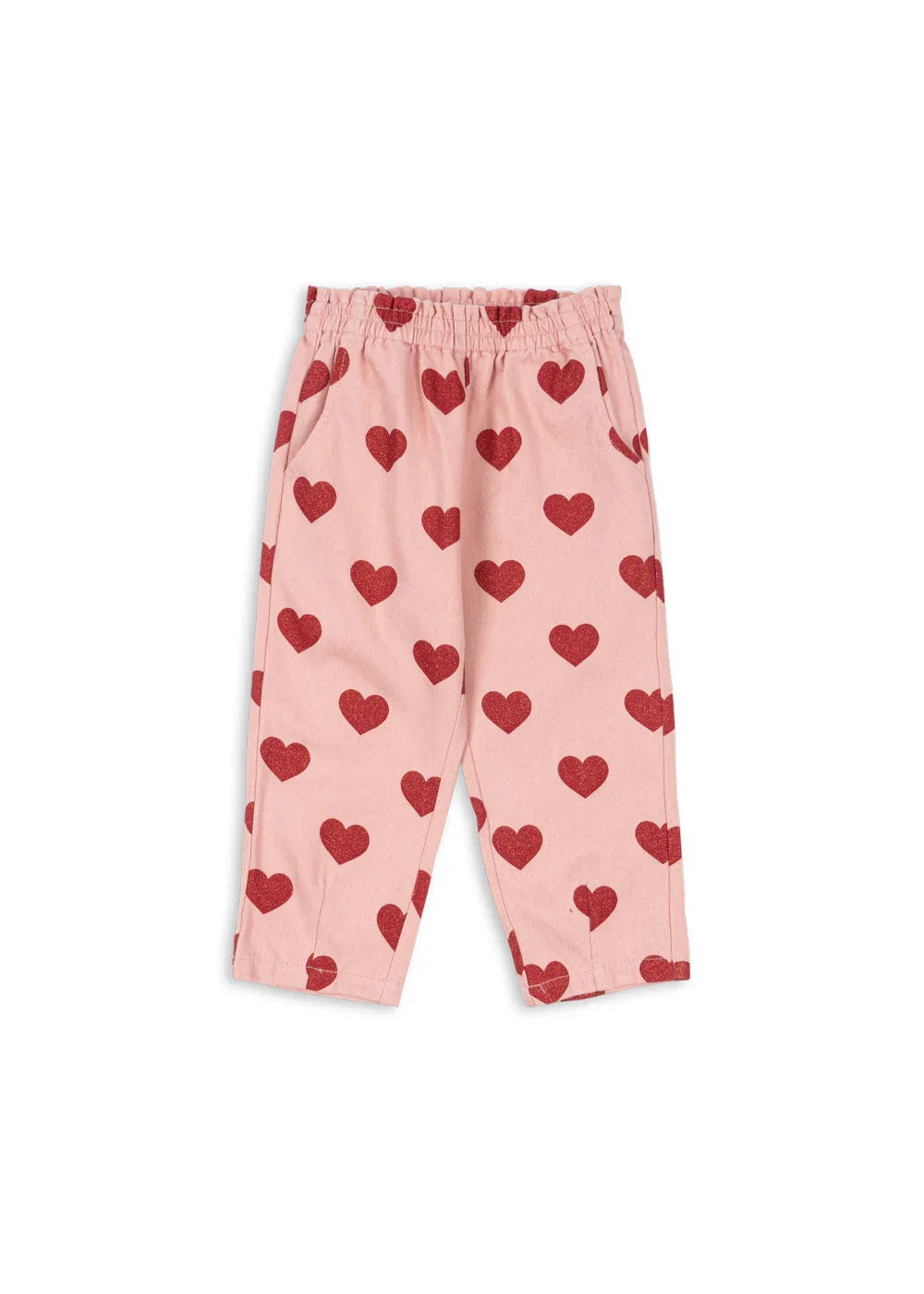 Die Magot Hose von Konges Sløjd kombiniert robusten Denim-Look mit kinderfreundlichem Tragekomfort. Diese Jeanshose aus 100 % Bio-Baumwolle ist überraschend weich und dennoch strapazierfähig – perfekt für aktive Entdecker. Sie hat eine gerade Passform und einen elastischen Bund, der bequem sitzt und viel Bewegungsfreiheit lässt. Das verspielte „Amour Glitter“-Design verleiht der Hose das gewisse Etwas – kleine funkelnde Akzente machen sie zu einem echten Lieblingsstück. Ob beim Spielen, Krabbeln oder ersten Schritten – diese Hose macht alles mit.
